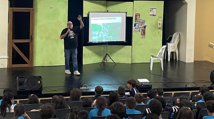 Prof. Acosta Informs Students of the UPR at Rio Piedras About Research Projects and Karst Posted on November 17, 2025March 2, 2026 by edwincaballero Prof. Acosta gave a speech to students of the Marista El Salvador School at Manatí alonside Prof. Sondra Vega in the Puerto Rican Heritage Week but with environmental focus. Prof. Acosta presented about the importance of caves.