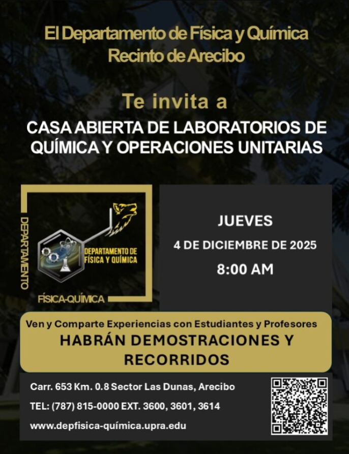 The American Chemical Society (ACS) UPRA Section alongisde the Physics-Chemistry presents the activity Open House where high school students and teachers are treated to chemistry demonstrations and tours of the facilities of the Department of Physics-Chemistry. The activity was coordinated by Dr. Maiella Ramos alongisde other professors from the department of physics-chemistry.