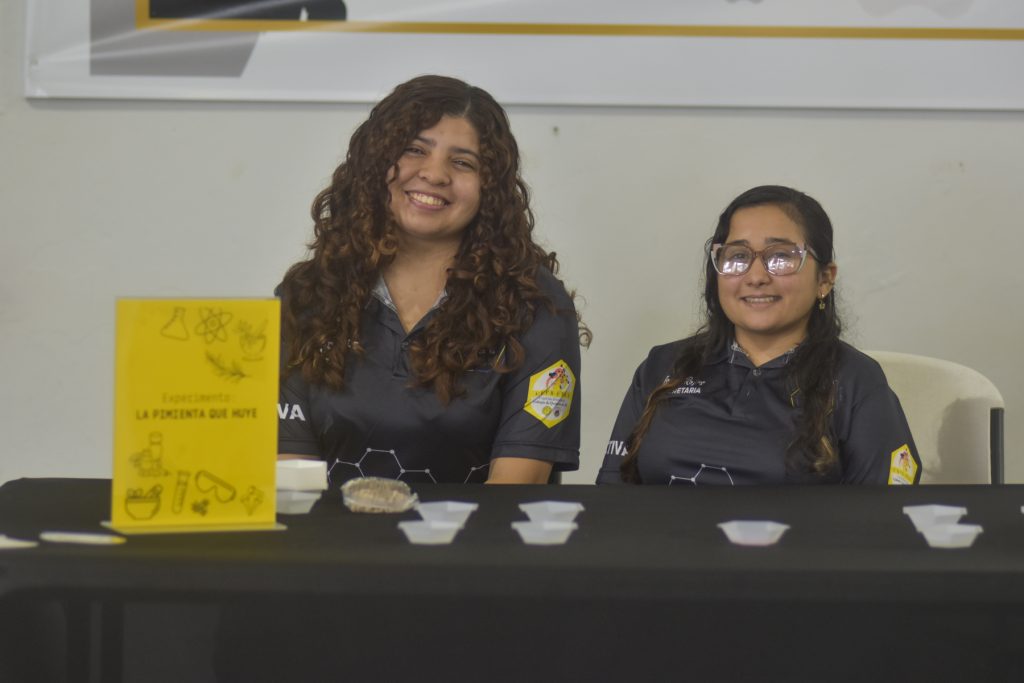 Invisible Ink demonstration performed by students Itiel Echevarria (left) and Niurka Rivera (right).