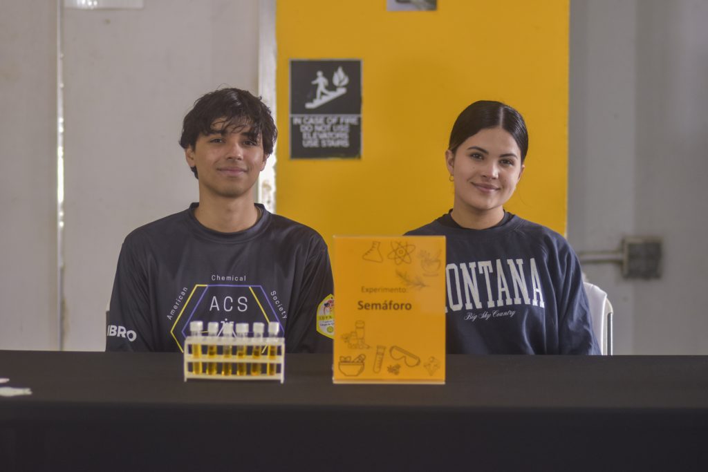 Chemistry Traffic Light demonstration performed by students Aniel Gonzalez (left) and Shirley Vazquez (right).