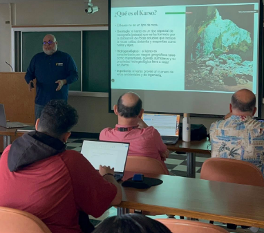 Prof. Acosta Informs Students of the UPR at Rio Piedras About Research Projects and Karst Posted on January 30, 2026March 2, 2026 by edwincaballero Prof. Acosta gave a speech to students of the Center of Resilience at the University of Puerto Rico at Rio Piedras on his research projects and the challenges of climate change in the Karst.